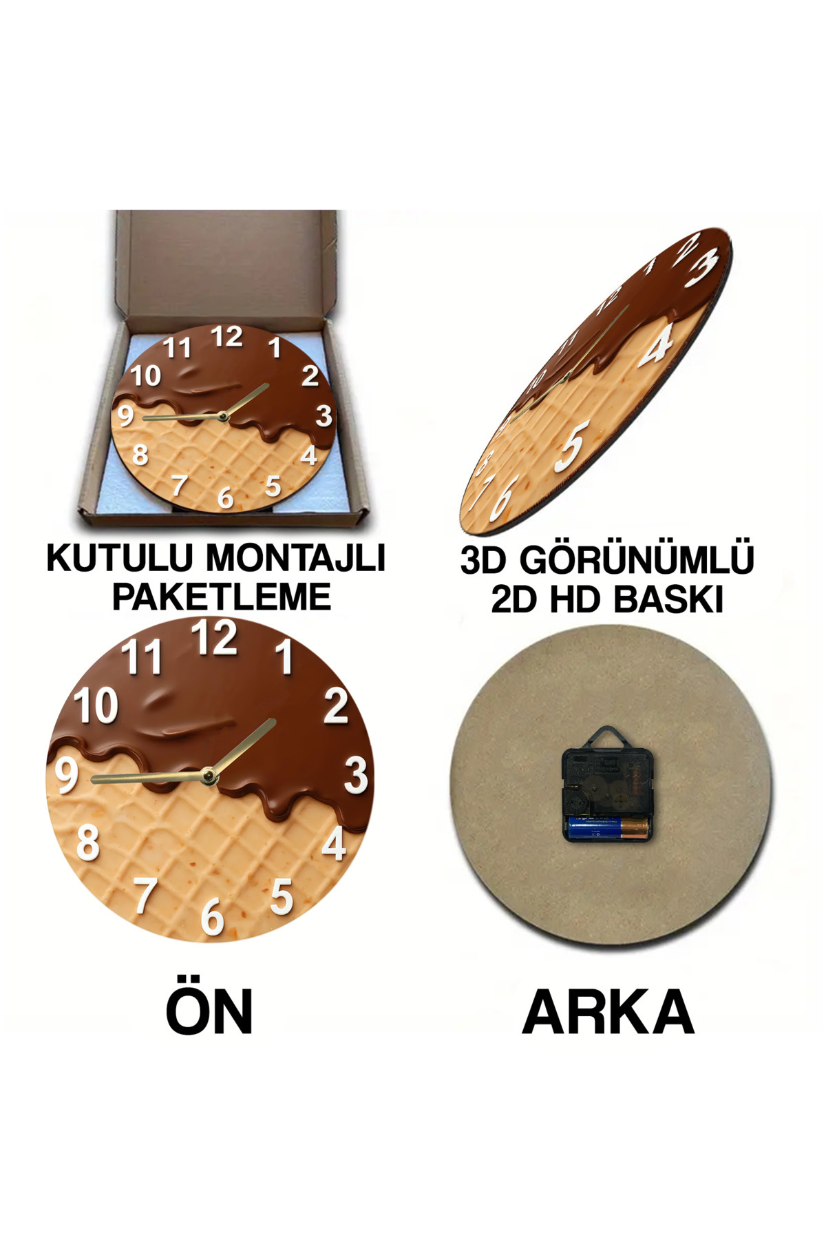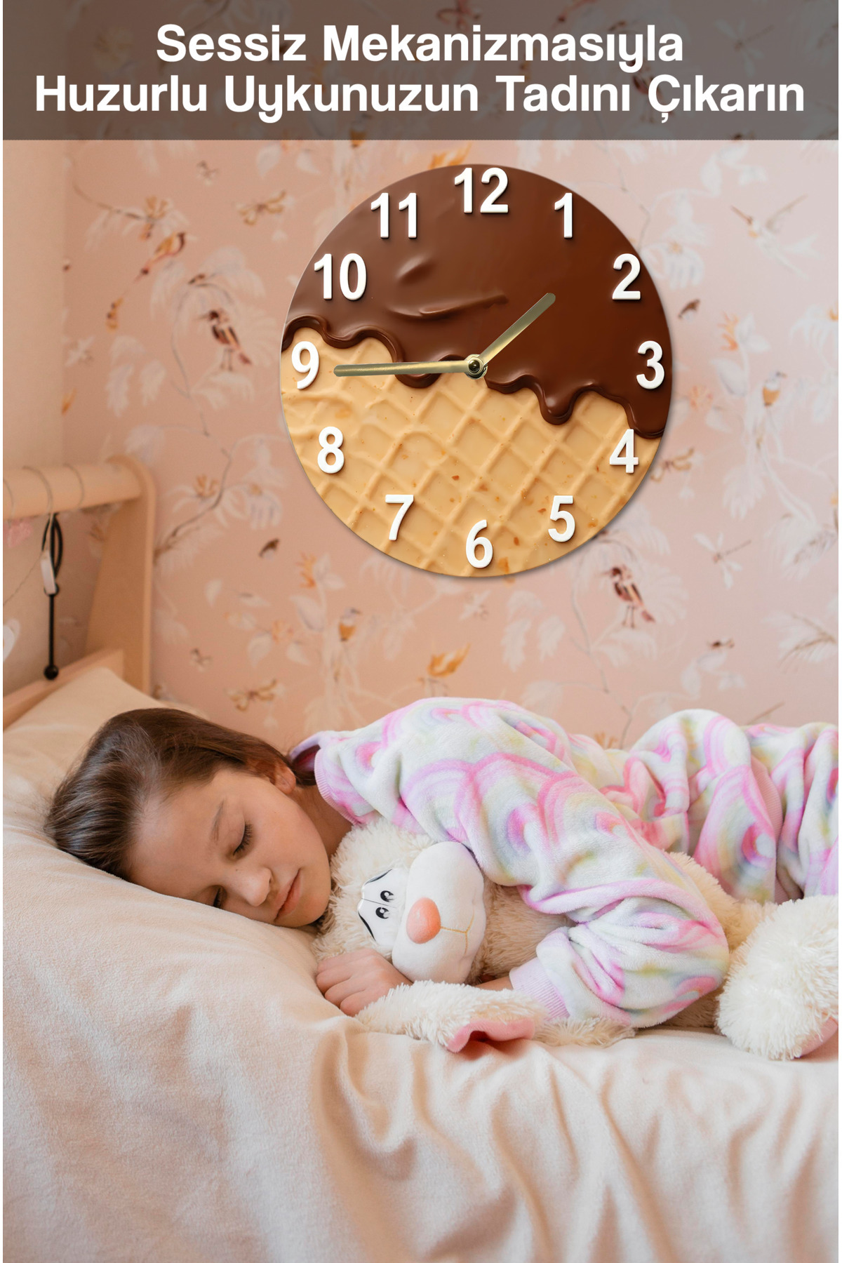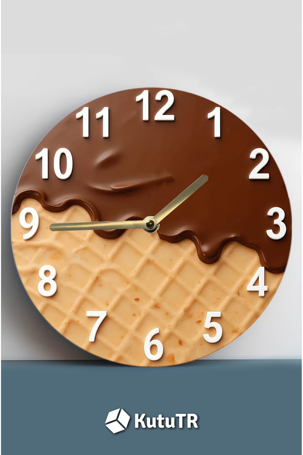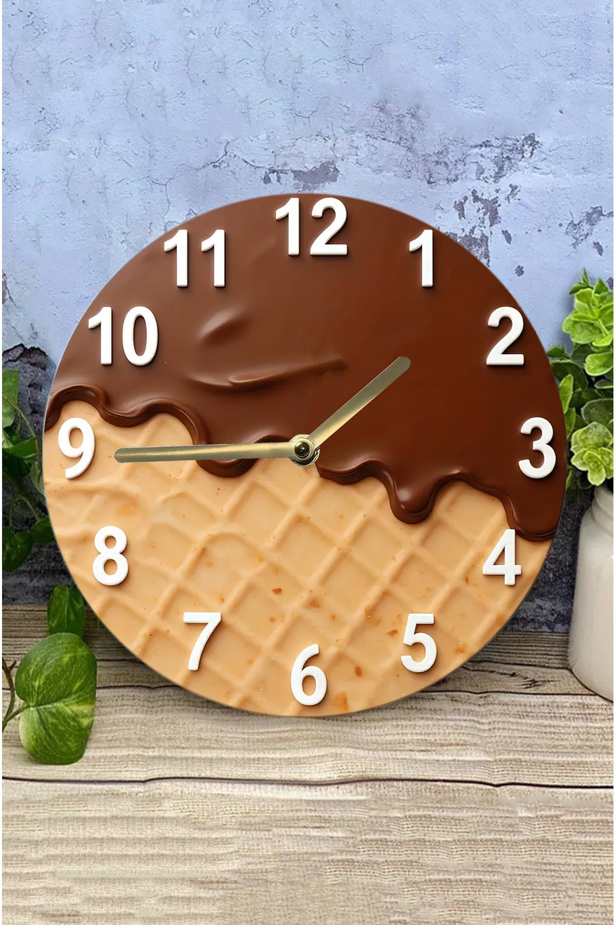 🍫 Tatlı Saat – Dondurma Külah Desenli 3D Görünümlü MDF Duvar Saati (33 cm) SDW338