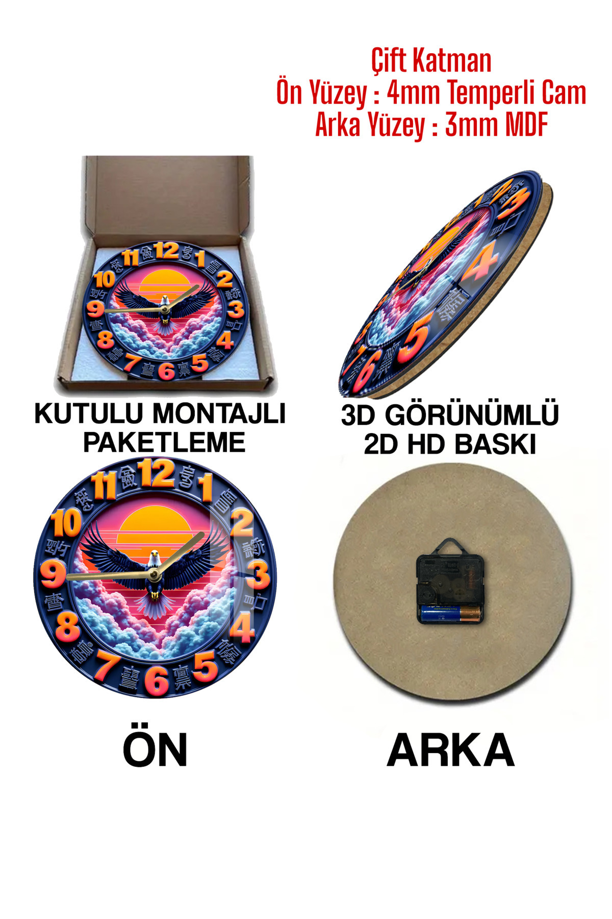 Temperli Cam Saat – Kartallı Gün Batımı Tasarımı – 33 cm CSDW052