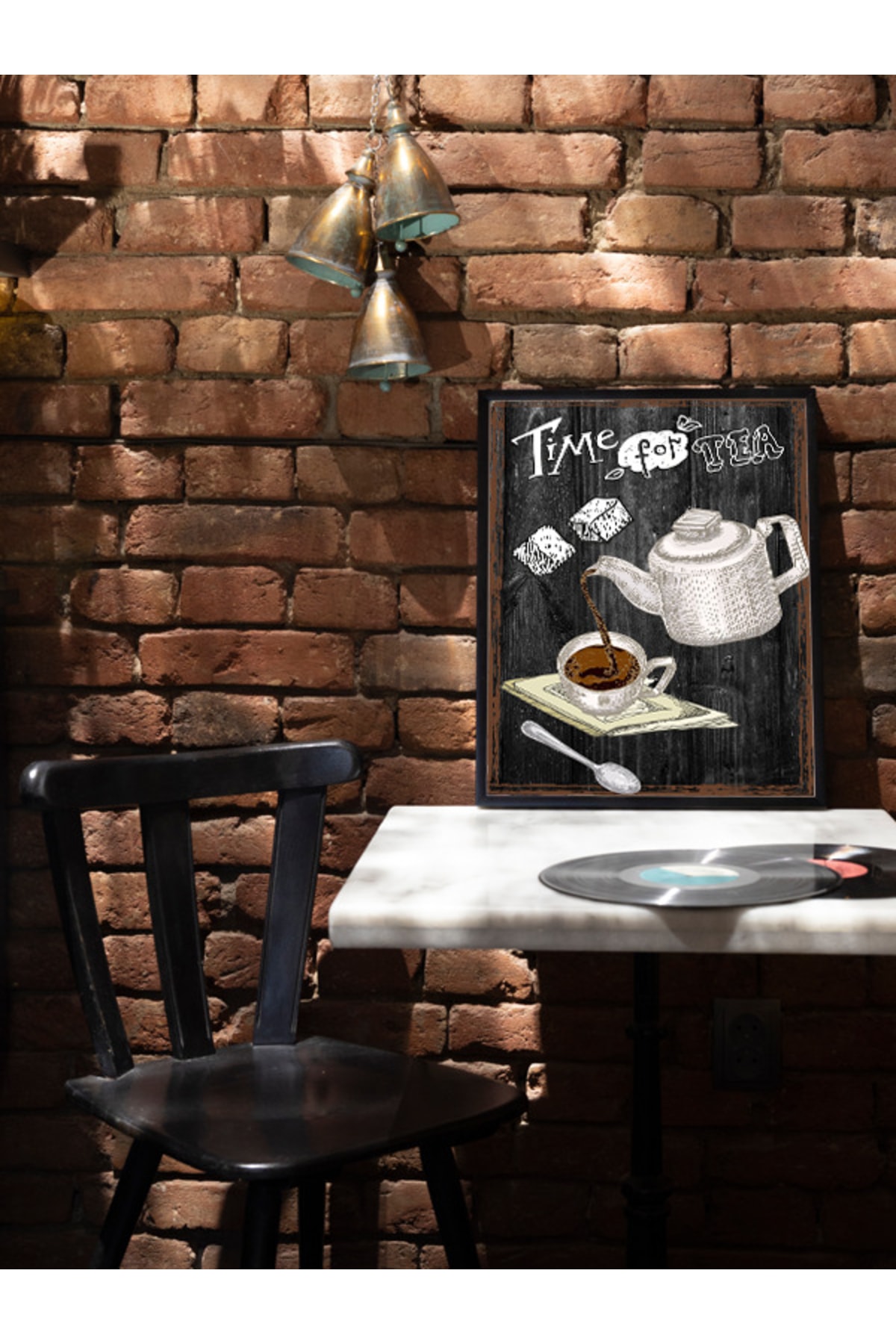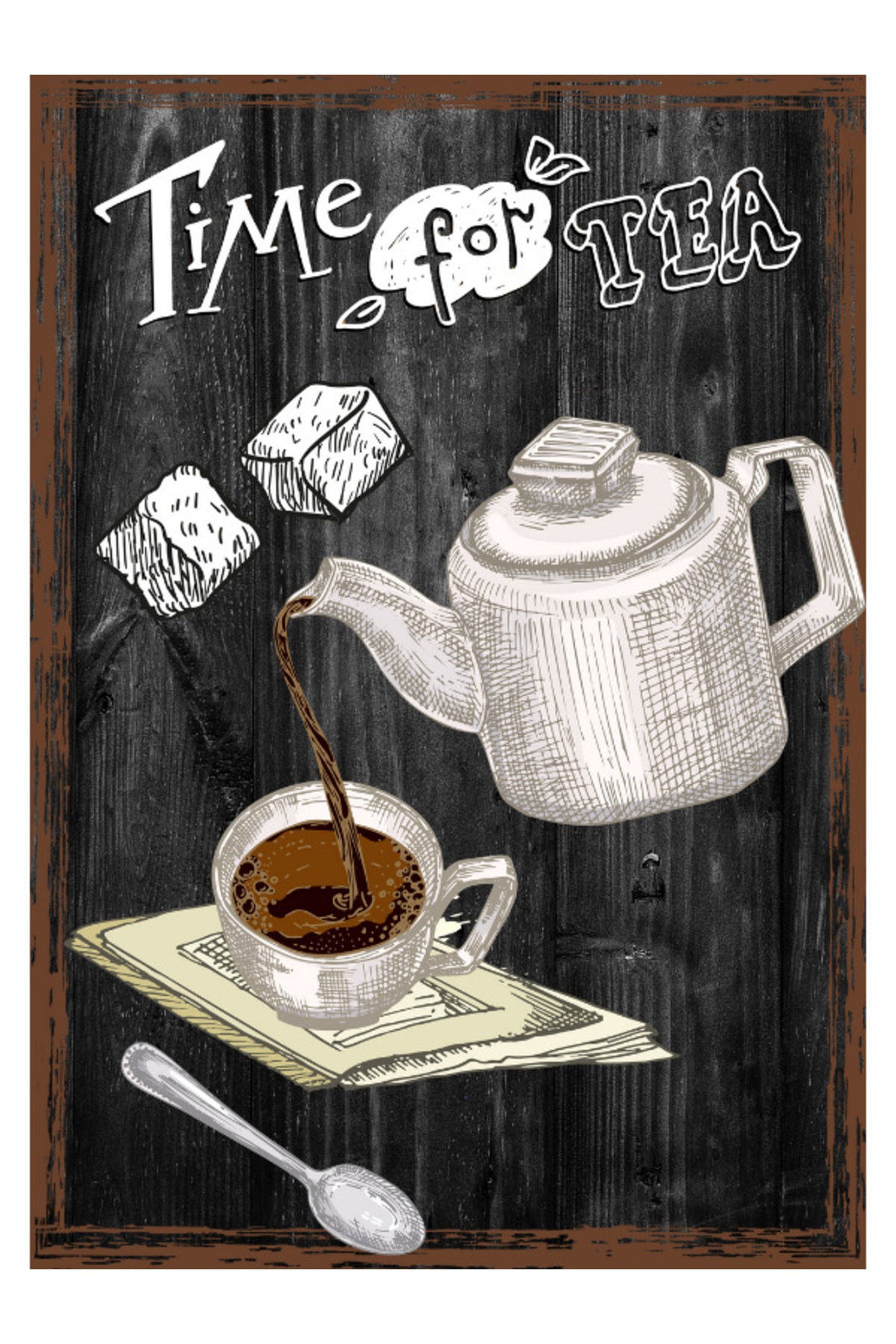 Time For Tea Siyah Çerçeve Görünümlü Ahşap Duvar Tablosu A4 - Çay Zamanı