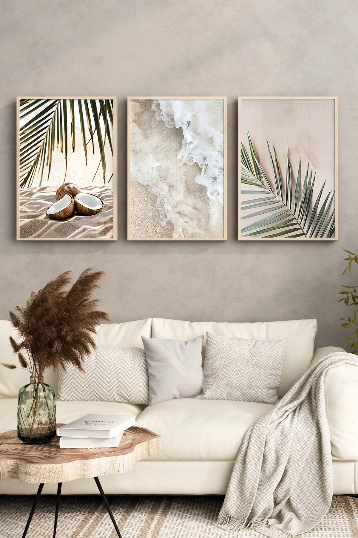 🏝️ Tropik Kumsal ve Deniz Temalı 3’lü Çerçeveli Tablo Seti – UV Baskı CRV1051