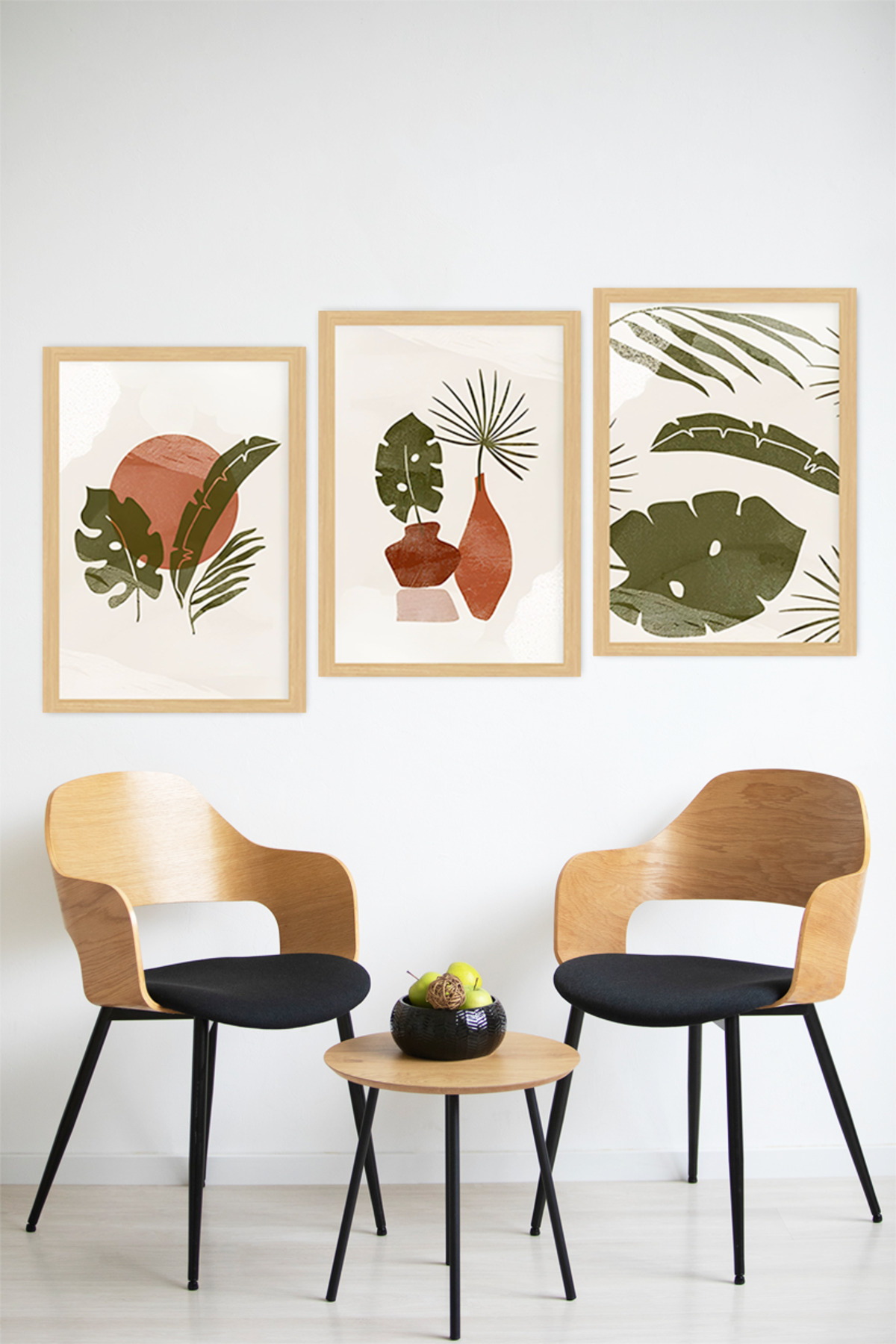 🌿 Tropikal Bitki ve Vazo Temalı 3'lü Dekoratif Çerçeve Görünümlü Tablo Seti 🌟 CRVS1133