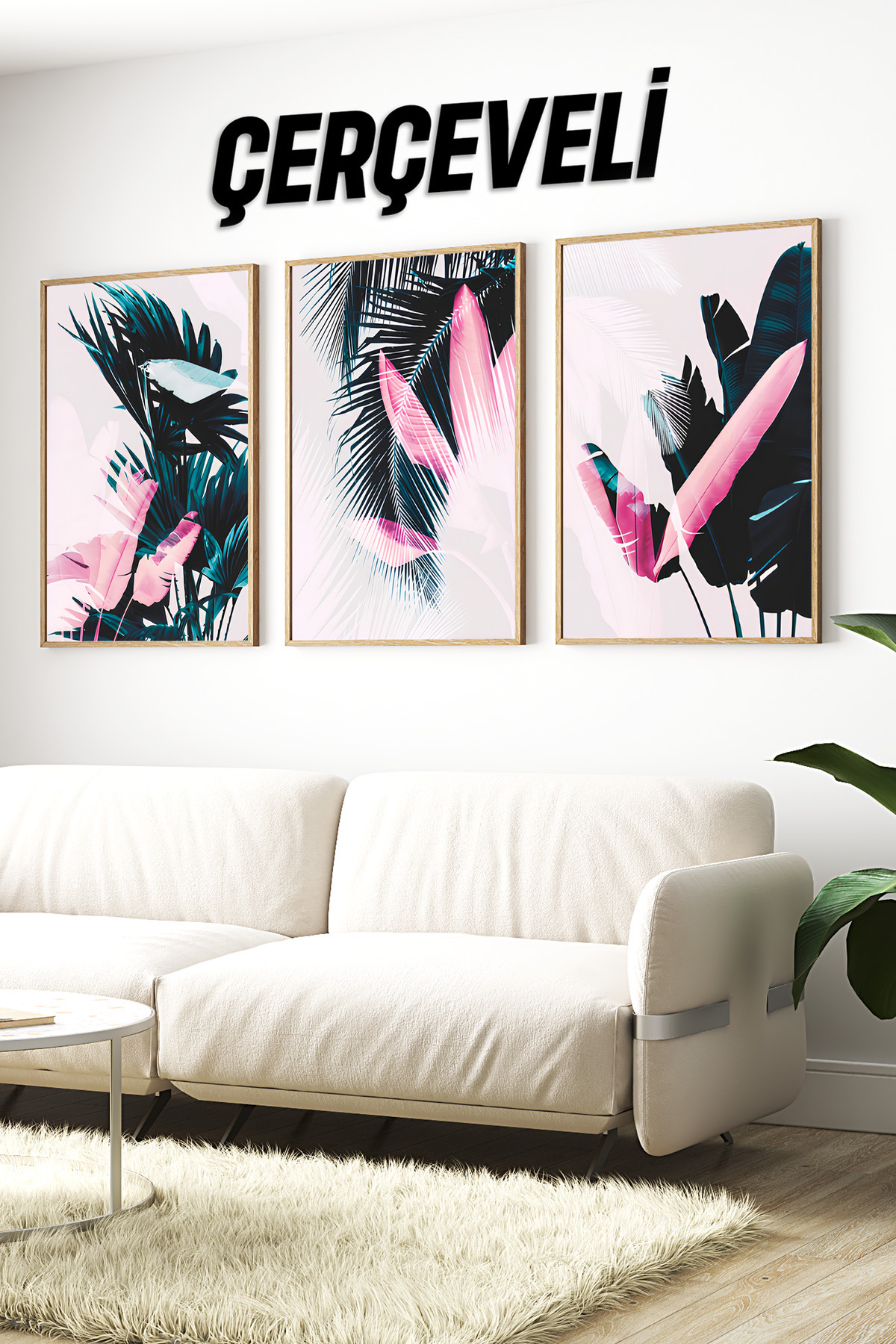 🌿 Tropikal Bitkiler Temalı 3’lü Çerçeveli Tablo Setii 🌿 CRV1145