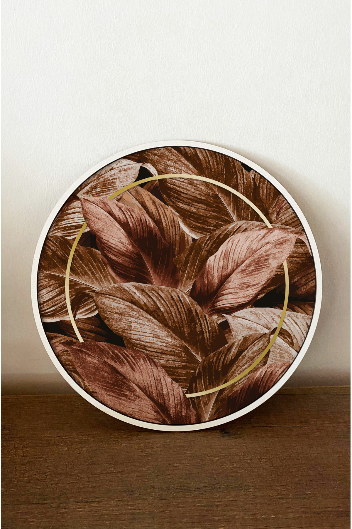 Tropikal Yaprak Desenli Mdf 3'lü Yuvarlak Tepsi Seti – 24 Cm M5