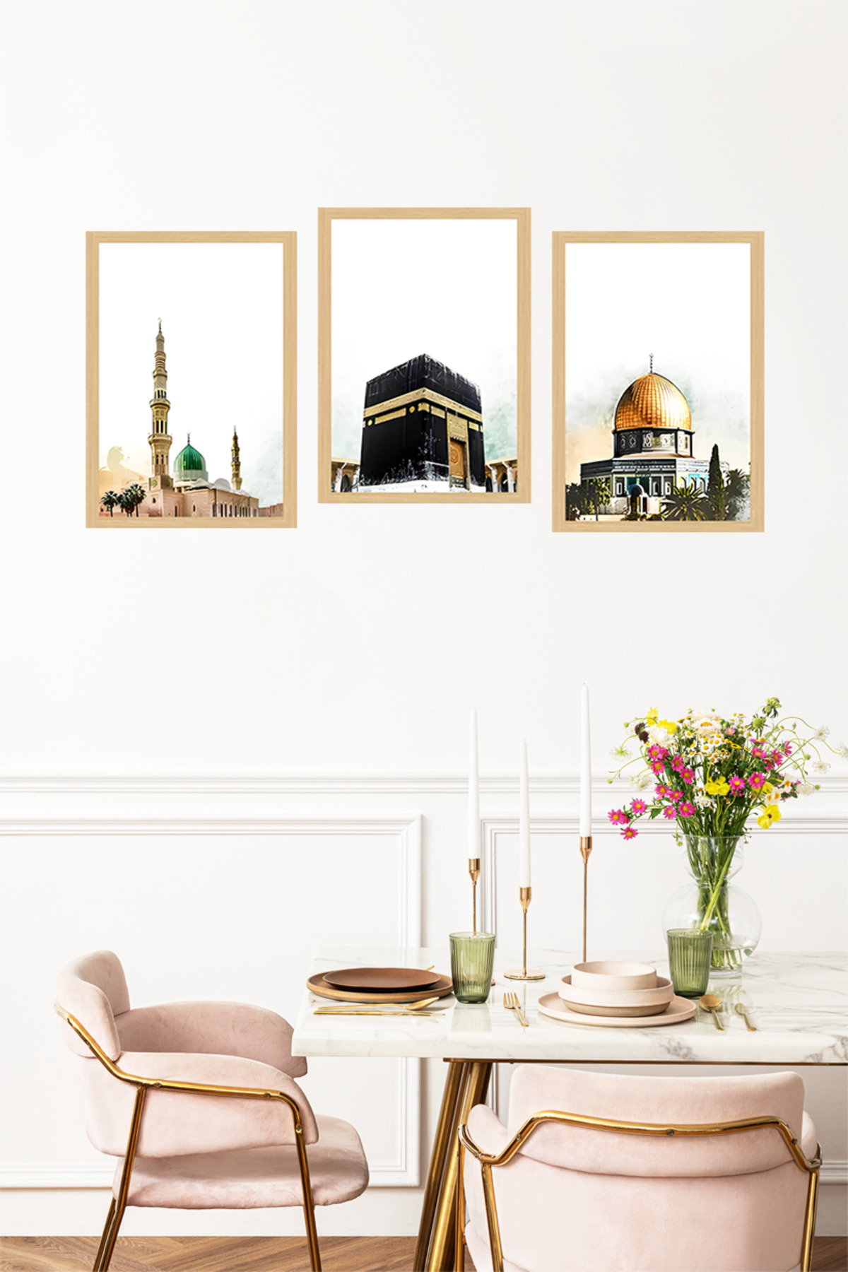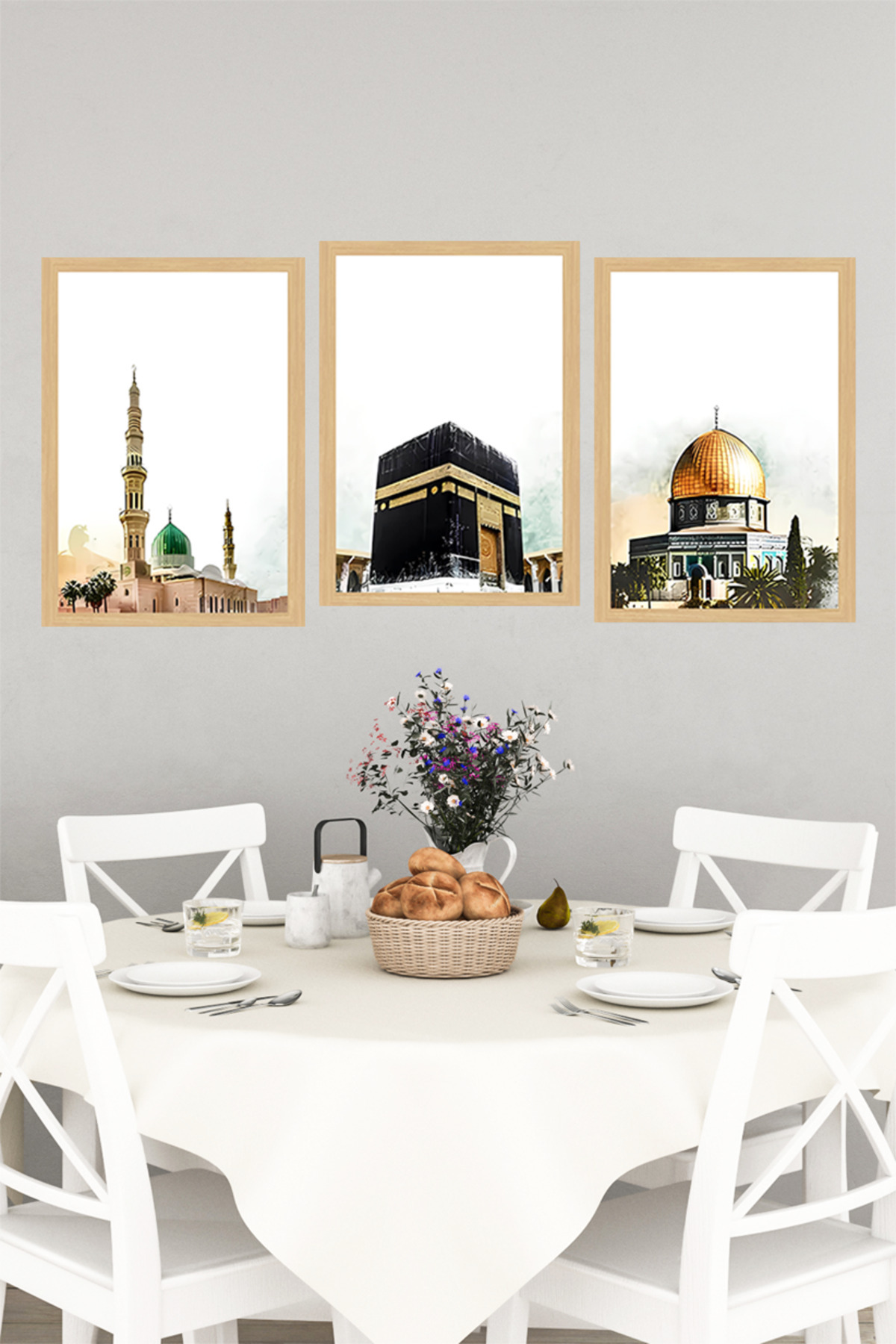 🕋 Üç Mescid Temalı Çerçeve Görünümlü Tablo Seti – Manevi Dokunuşlu Duvar Dekoru 🕌🕊️ CRVS1237