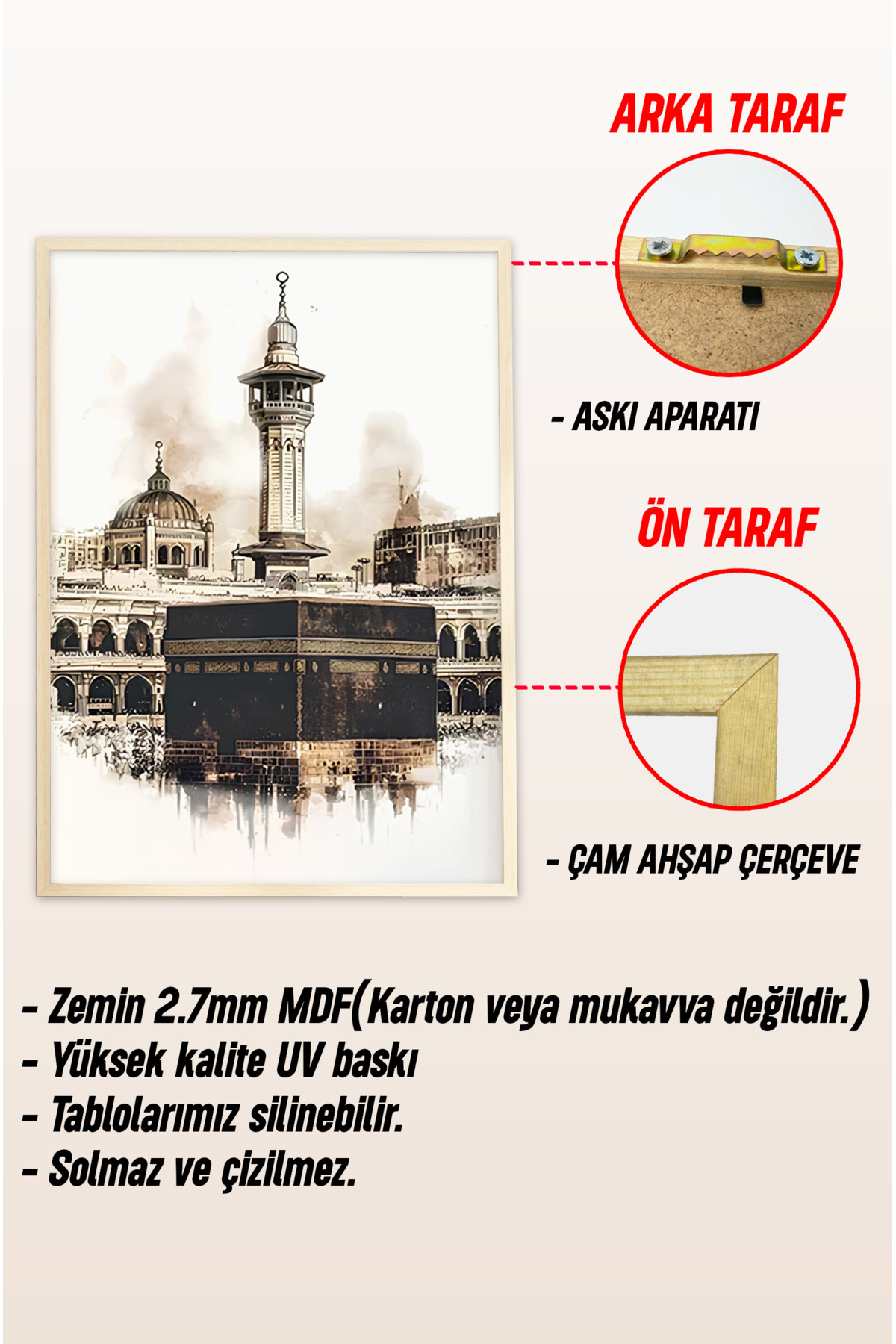 🕋 Üçlü Çerçeveli İslami Mekânlar Tablo Seti🕋 CRV1079
