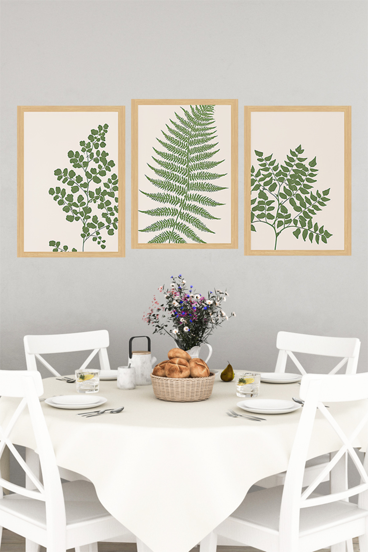 🌿 Yeşil Yaprak Temalı Çerçeve Görünümlü 3'lü Tablo Seti 🌟 CRVS1171