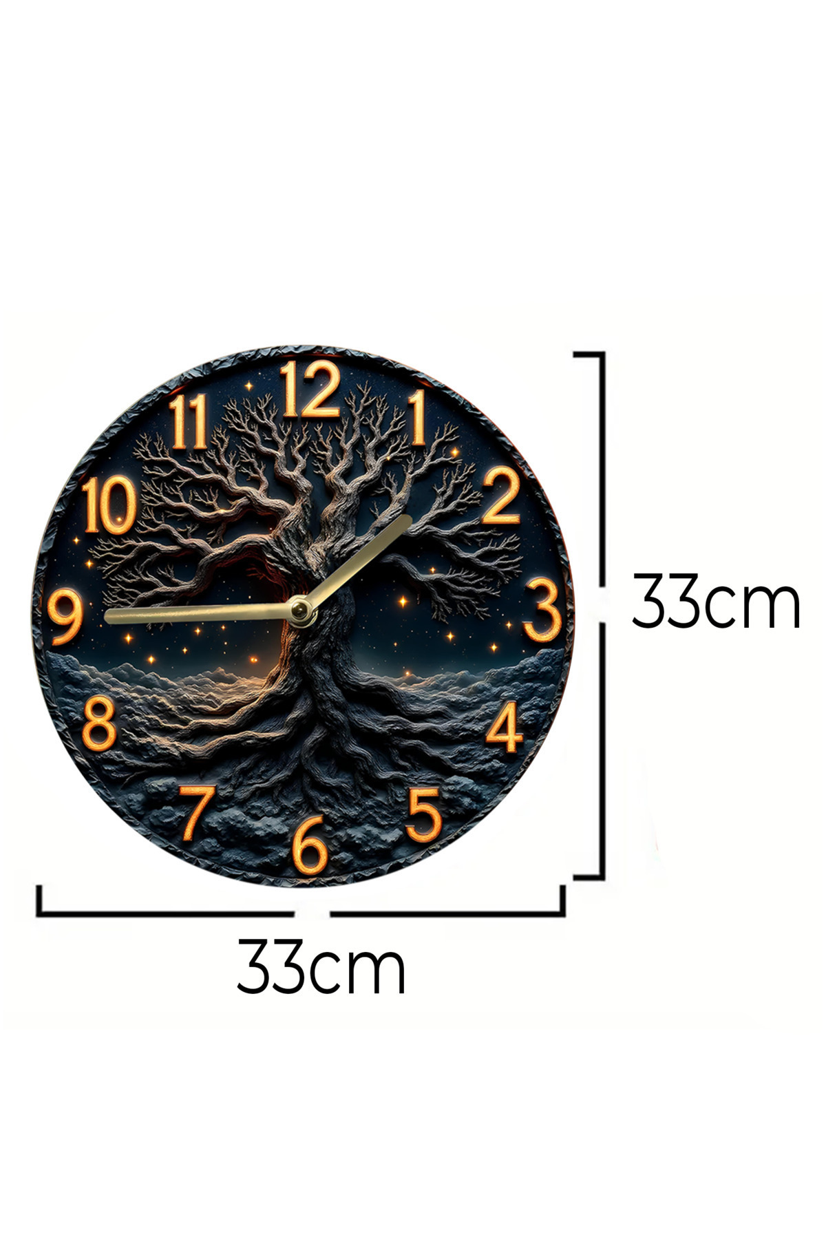 🌌 Yıldızlı Gece Ağacı – 3D Görünümlü MDF Duvar Saati (33 cm) sdw288