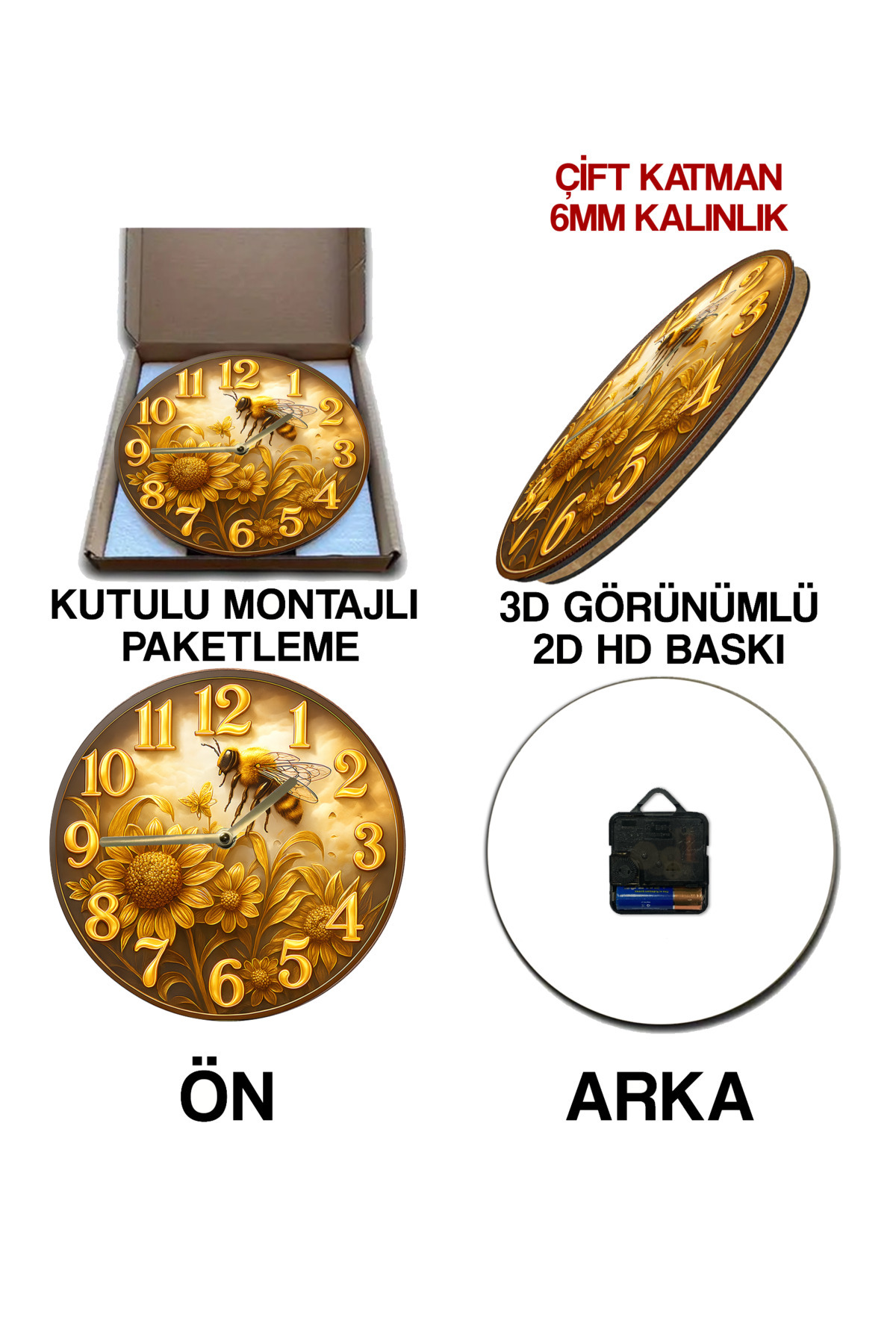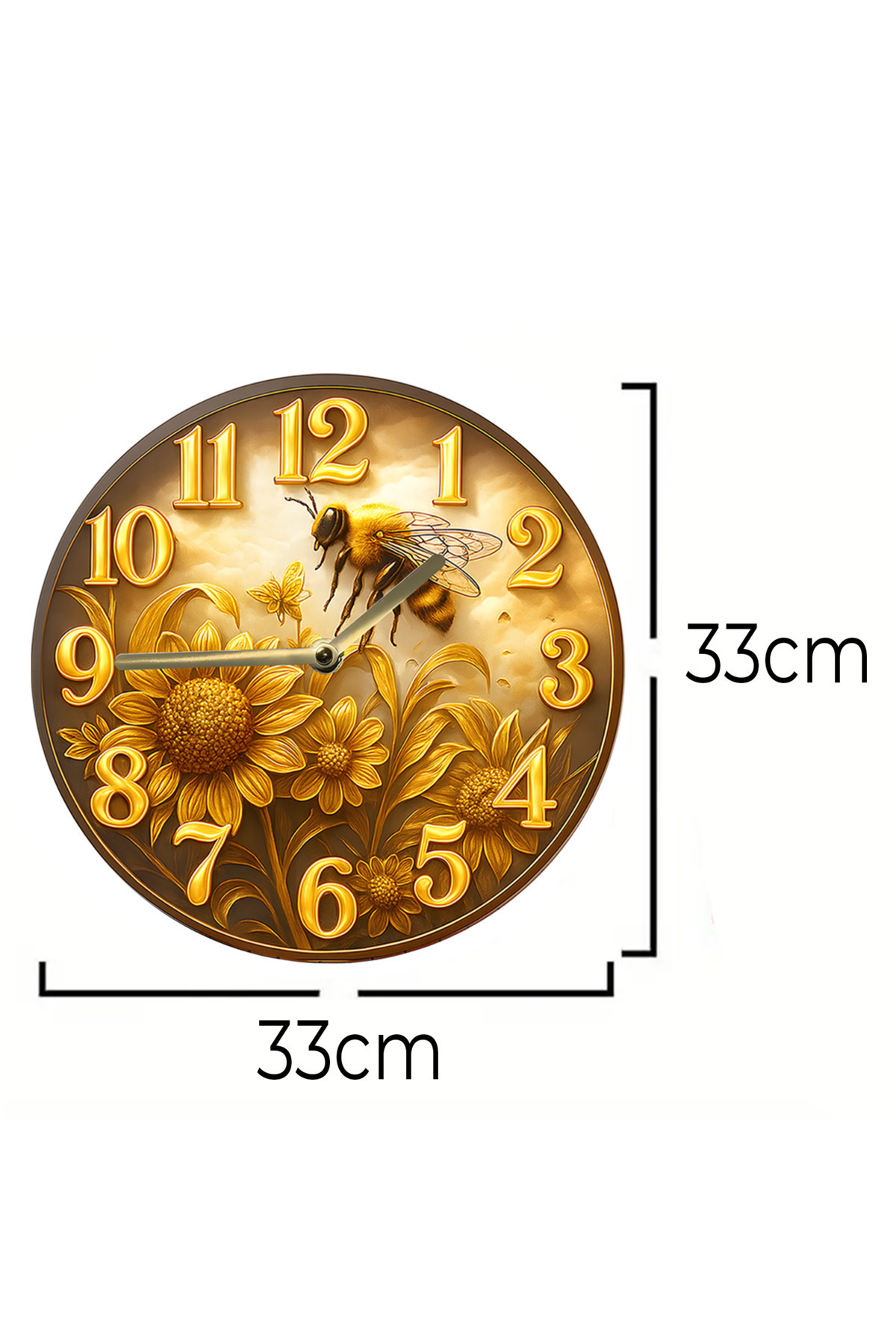 Zamana Doğanın Kanatlarıyla Dokunun – Ayçiçeği ve Arı Temalı Ahşap Duvar Saati, Kuvars Sdw2011