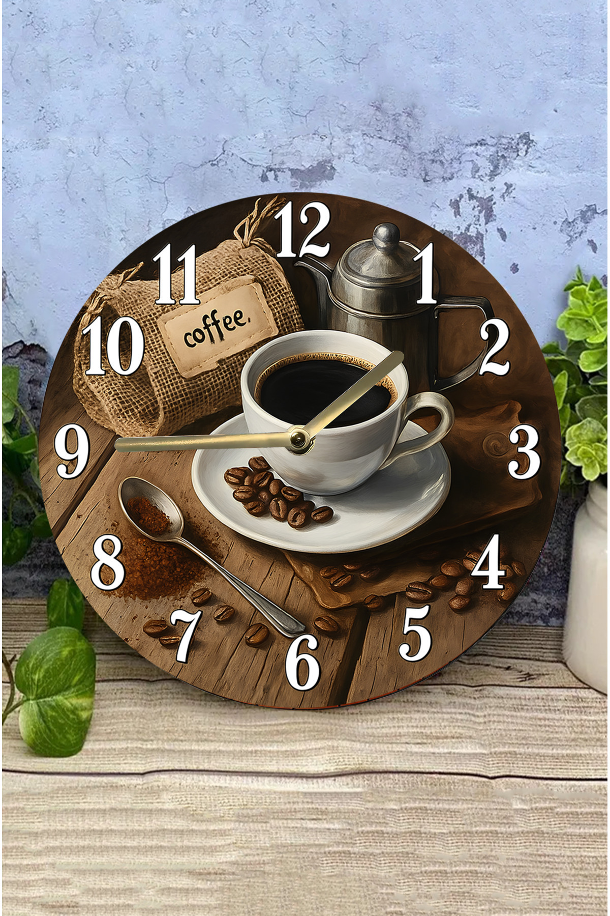 Zamanın Klasik Lezzeti – Kahve Temalı Sessiz Yuvarlak Ahşap Duvar Saati, Kuvars Coffe 2d Sdw2012