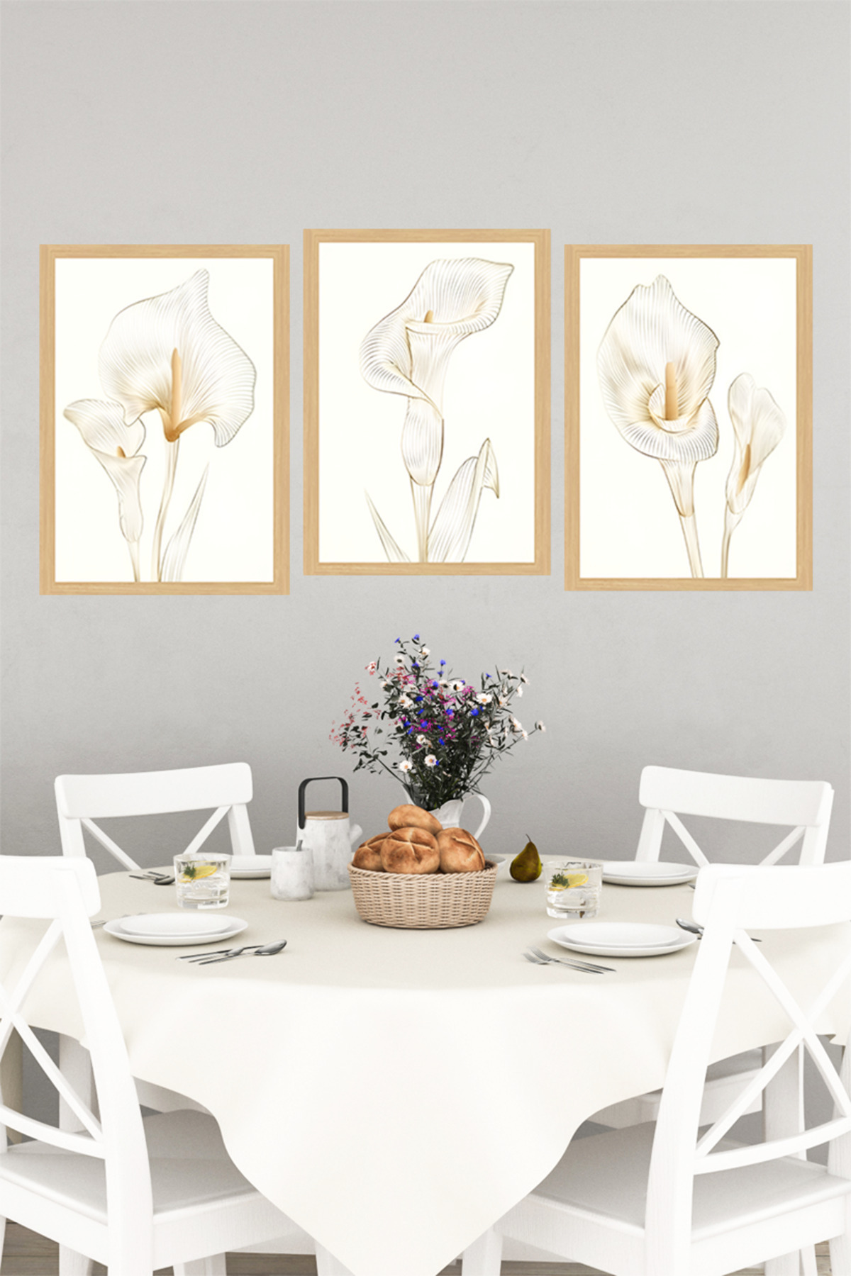 🌿 Zarif Beyaz Zambaklar Temalı 3’lü Tablo Seti – Modern Çerçeve Görünümlü Duvar Dekoru🌟 CRVS1139