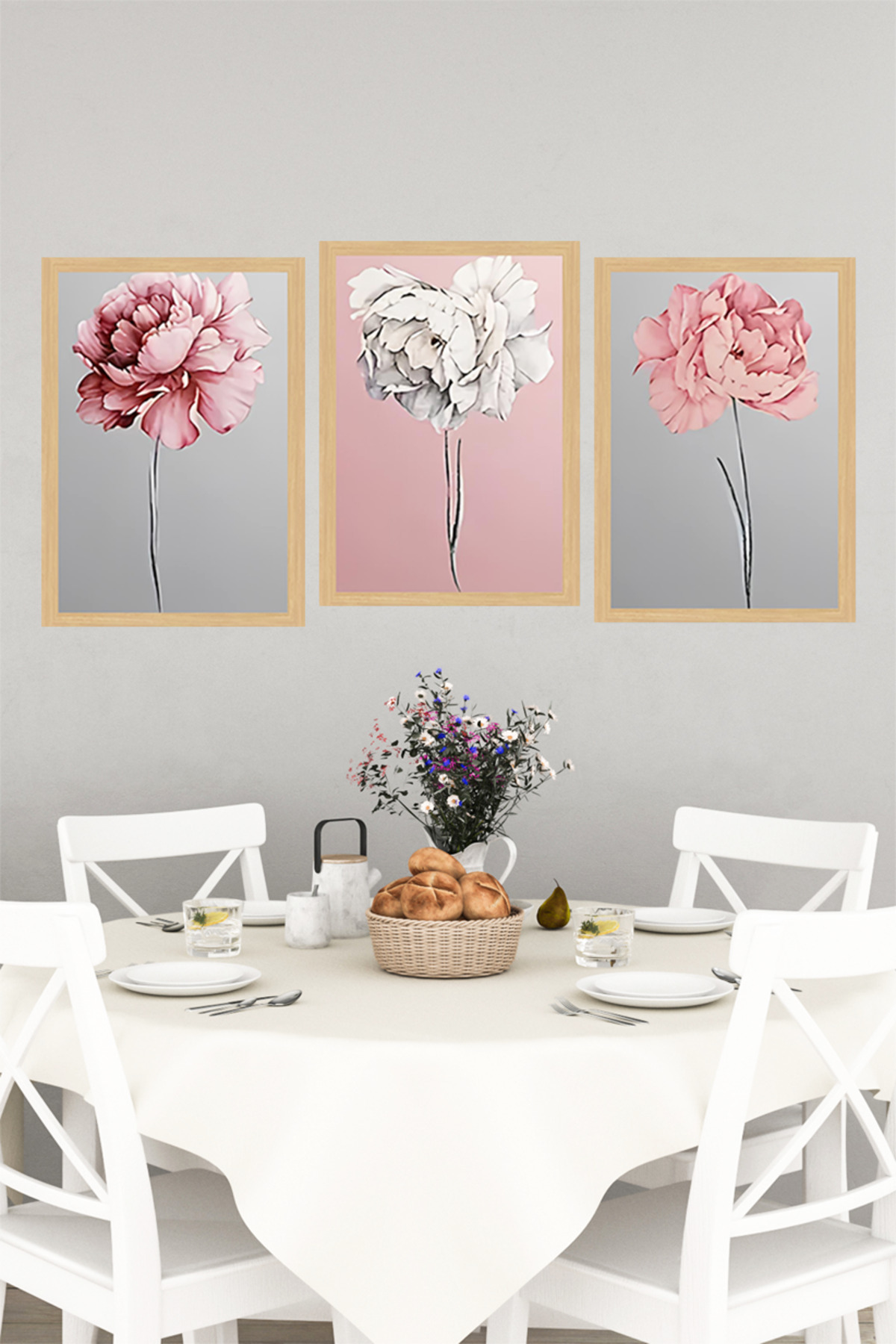 🌸 Zarif Pastel Çiçekler Temalı 3’lü Çerçeve Görünümlü Tablo Seti🌟 CRVS1120