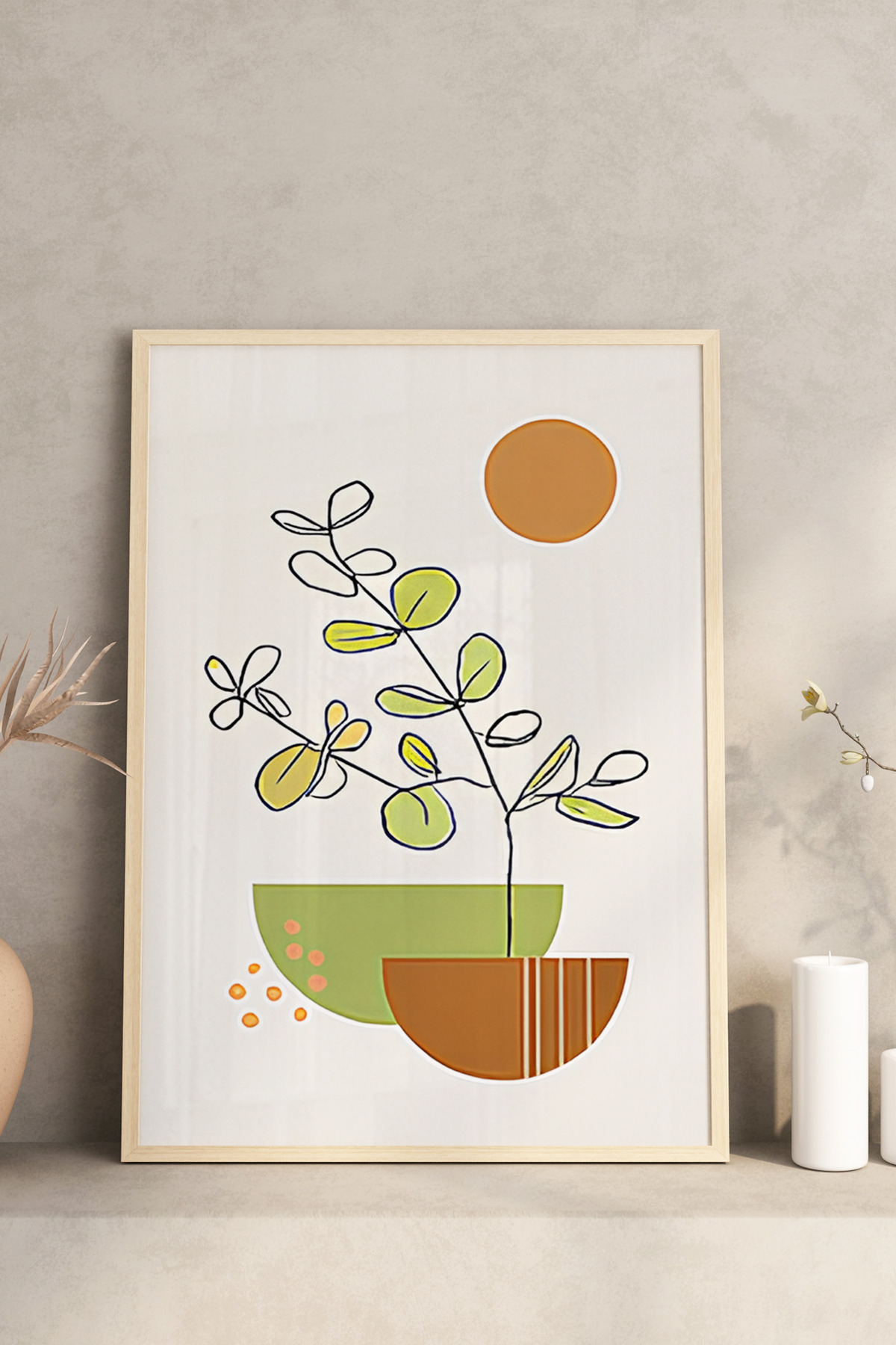 🌿🫒 Zeytin Dalı ve Geometrik Formlar Temalı 3’lü Ahşap Çerçeveli Minimalist Tablo Seti 🌿 CRV1158