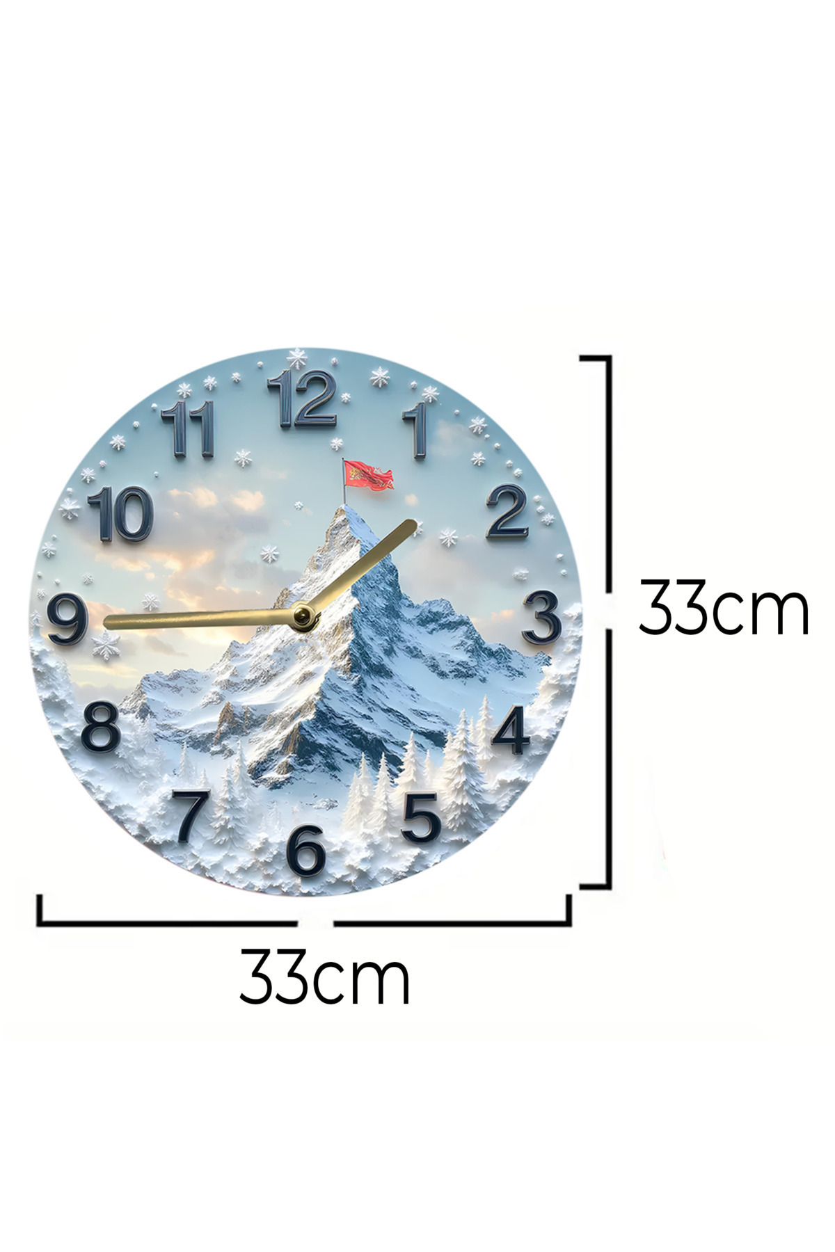 🕒 Zirvelerde Zaman – 3D Dağ Manzaralı MDF Duvar Saati (33 cm) sdw301